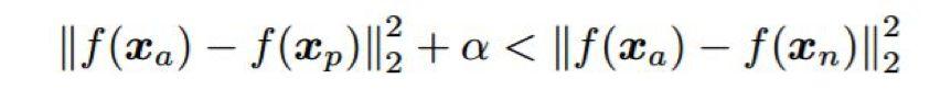 选择用于训练 CNN 方法的损失函数已经成为近来人脸识别最活跃的研究领域。即使使用 softmax 损失训练的 CNN 已经非常成功 [99,9,10,123],但也有研究者认为使用这种损失函数无法很好地泛化到训练集中未出现过的主体上。这是因为 softmax 损失有助于学习能增大类间差异的特征(以便在训练集中区别不同的类),但不一定会降低类内差异。研究者已经提出了一些能缓解这一问题的方法。优化瓶颈特征的一种简单方法是使用判别式子空间方法,比如联合贝叶斯 [48],就像 [9,124,125,126,10,127] 中所做的那样。另一种方法是使用度量学习。比如,[100,101] 中使用了配对的对比损失来作为唯一的监督信号,[124-126] 中还结合使用了分类损失。人脸识别方面最常用的度量学习方法是三元组损失函数 [128],最早在 [102] 中被用于人脸识别任务。三元组损失的目标是以一定余量分开正例对之间的距离和负例对之间的距离。从数学形式上讲,对于每个三元组 i,需要满足以下条件 [102]: