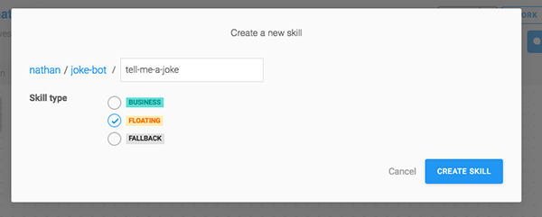 在此,我们的技能属于浮动类型。我将其命名为“tell-me-a-joke”。