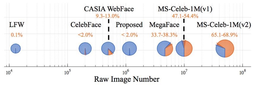 在商汤入选 ECCV 2018 论文《人脸识别的瓶颈在于数据集噪声(The Devil of Face Recognition is in the Noise)》中,对于现有人脸数据集中的标签噪声问题进行了深入研究,对 MegaFace 和 MS-Celeb-1M 数据集中的噪声特性和来源做了全面的分析,发现干净子集对于提高人脸识别精度效果显著。