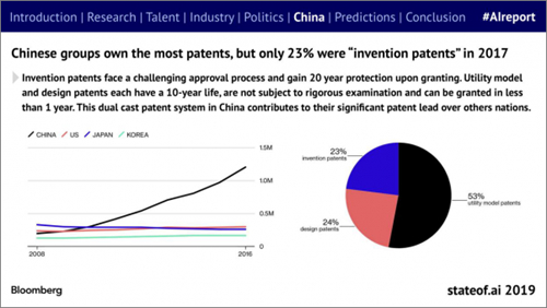 根据报告数据显示,这种双重专利制度使中国在专利方面领先于其他国家,自2010年起,中国超越日本成为国内专利的最大囤积者,并自那以来一直保持领先地位。但在2017年,“发明专利”仅占中国专利总数量的23%。这意味着这些专利并没有那么高的含金量。