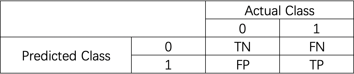 - TN:当真实值为0,且预测值为0,即为TN(True Negative)