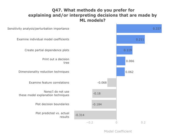 模型系数。数据:Kaggle 第二次年度机器学习和数据科学调查。图表:作者