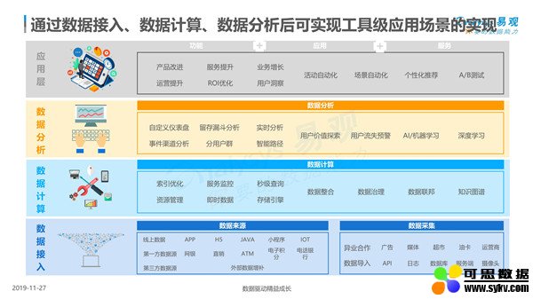 同时,分析表示,在大数据行业级应用方面,不同行业的大数据应用看点各不相同,但都在往更好的方向发展, 同时注重与每个消费个体进行联结是其本质特征。在大数据企业级应用方面,用户挖掘是关键,使得商业发展及数字化场景得以实现。在大数据工具级应用方面,工具级应用旨在助力客户减少重复工作、优化流程和增强员工认同。