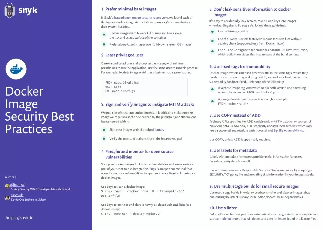 https://snyk.io/blog/10-docker-image-security-best-practices/