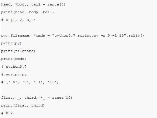 扩展的可迭代对象解包(最低 Python 版本为 3.0)