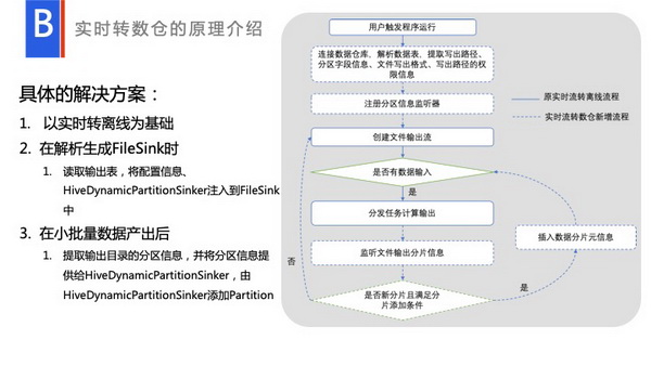 ,在运行完每一个批量,都有一个信息反馈,如到底输出了哪些partition,能拿到相应的分区信息。拿到这个分区信息之后,可以对它进行一些处理,最后注入到Hive中,这样的话到底生产了哪些partition,完全可以在Hive里面可以去查到的。