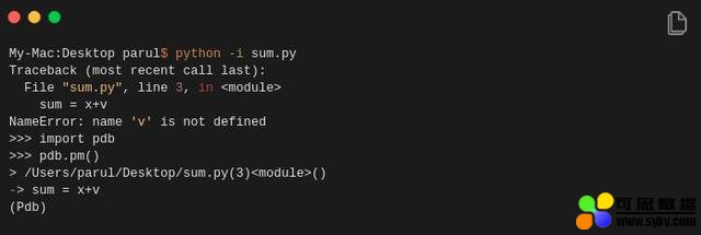 其次,因为用户仍然在解释程序中,所以可以通过以下方式轻松调用python调试器: