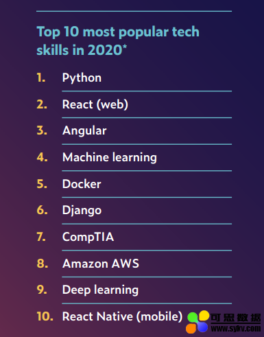Udemy 报告指出,Python、React(web)、Angular、机器学习和 Docker 将成为 2020 年最受欢迎的五大技能。