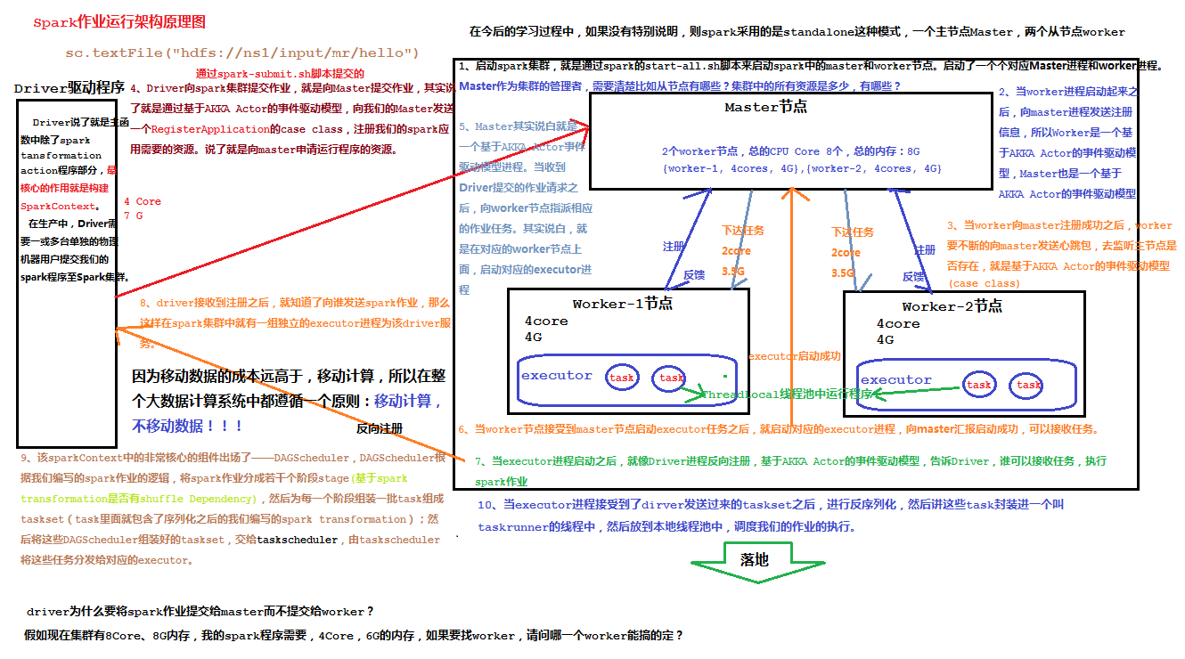 Spark-wc(word count)运行架构原理图(纯手绘)