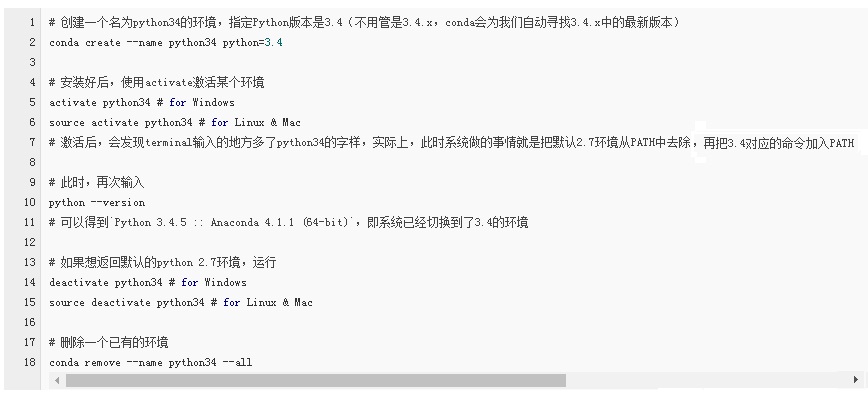 conda管理工具可以同时安装不同版本的python,并且自由的进行切换,经常使用的有以下的命令: