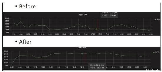 如上图,是线上的一个结果,QPS之前是17.86M,优化之后是25.31M。