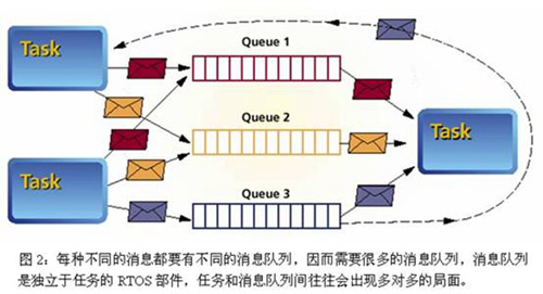 另外一种消息队列,则类似一个公共的邮箱。一个消息队列服务就是一个进程,任何使用者都可以投递或收取这个进程中的消息。这样对于消息队列的使用更简便,运维管理也比较方便。不过这种用法下,任何一个消息从发出到处理,最少进过两次进程间通信,其延迟是相对比较高的。并且由于没有预定的投递、收取约束,所以也比较容易出BUG。