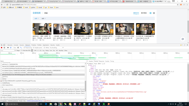 获取视频的URL: http://space.bilibili.com/ajax/member/getSubmitVideos?mid=79415852&pagesize=30&tid=0&page=1&keyword=&order=senddate