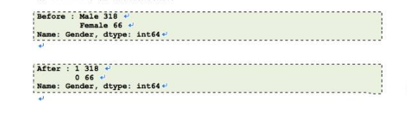 我们所有的类别特征都已编码。用X_train.head()可以查看更新了的数据集。我们将看下性别(Gender)在编码前后的频率分布。