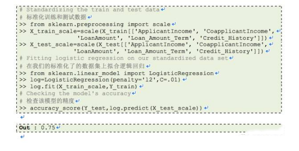 在之前的章节,我们在贷款预测数据集之上操作,并在其上拟合出一个KNN学习模型。通过缩小数据,我们得到了75%的精度,这看起来十分不错。我在逻辑回归模型上尝试了同样的练习, 并得到如下结果: