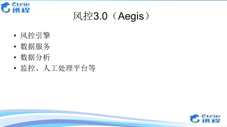 目前携程利用自主研发的风控系统有效识别、防范这些风险。携程风控系统从零起步,经过五年的不断探索与创新,已经可以有效覆盖事前、事中、事后各个环节。也从原来基于“简单规则+DB”,发展到目前能够支撑10X交易增长的智能化风控系统,基于规则引擎、实时模型计算、流式处理、M/R、大数据、数据挖掘、机器学习等的风控系统,拥有实时、准实时的风险决策、数据分析能力。