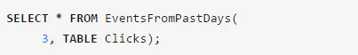 TVF 的输入是一个 table,输出是另外一个 table。这种在机器学习的模型训练场景下比较有用。下面是论文中的具体的一个例子:EventsFromPastDays 就是一个 TVF。