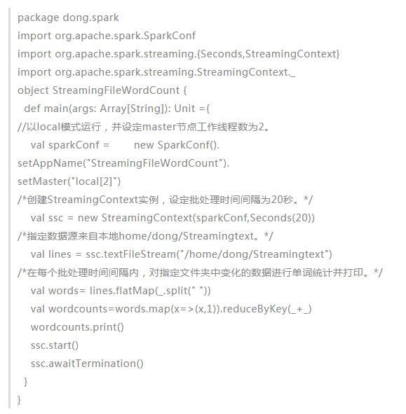 下面以Spark Streaming官方提供的WordCount代码为例来介绍Spark Streaming的使用方式。