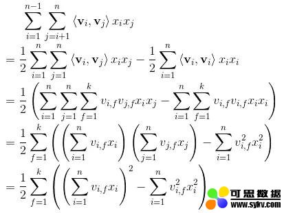 我们首先来回顾一下 FM 模型,FM 模型用 n 个隐变量来刻画特征之间的交互关系。这里要强调的一点是,n 是特征的总数,是 one-hot 展开之后的,比如有三组特征,两个连续特征,一个离散特征有 5 个取值,那么 n=7 而不是 n=3.