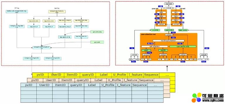 因为手淘推荐日志很大,特征来源很复杂,离线和在线的细微变动都可能导致样本出错或离线在线特征 / 模型不一致,影响迭代效率甚至造成生产故障,我们的解决办法是做一个端到端的开发框架,开发框架对日志,特征和样本做抽象,减低人工开发成本和出错的可能,并在框架嵌套 debug 和数据可视化工具,提高问题排查效率。目前手淘搜索推荐已经基本上做到了从最原始日志的收集、到特征抽取以及训练模型的验证、模型的发布,再到线上部署以及实时日志的收集形成整体的闭环,提升了整体模型的迭代效率。