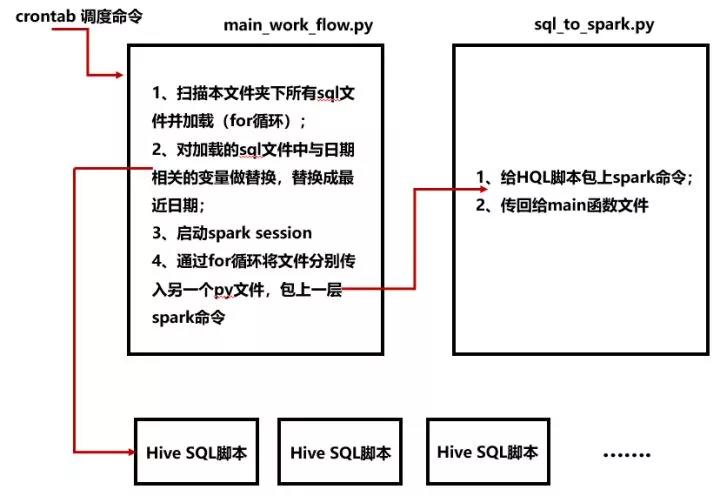 ②通过一个 python 脚本,自动扫描目录下的 sql 文件,加载并替换掉 sql 中的日期变量,并将替换日期后的脚本文件包上 spark 去执行;