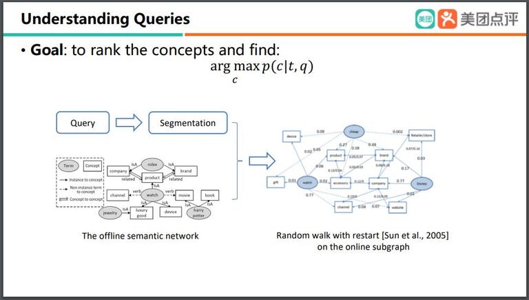 当我们用这样一个非常大的离线知识图谱来做 Text Understanding 的时候,我们可以首先将这个 Text 进行分割处理,在分割之后,我们实际上是可以从这个非常大的离线知识图谱中截取出它的一个子图。最后我们使用了 Random Walk With Restart 的模型,来对这样一个在线的 Subgraph 进行分类。