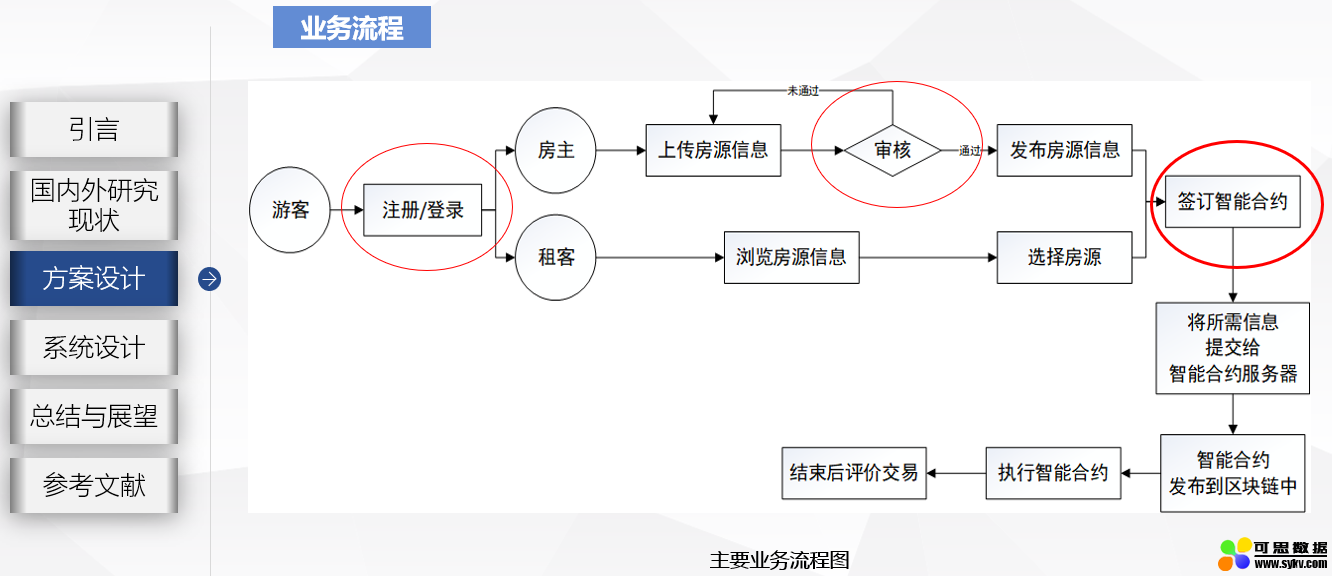 - 基于区块链的房屋租赁系统流程不完整,去中心化程度较低,没有完全发挥出区块链的优势;