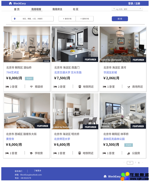 显示在页面上的房源信息列表的数据从区块链上读取。且只显示状态为未出租的房源。