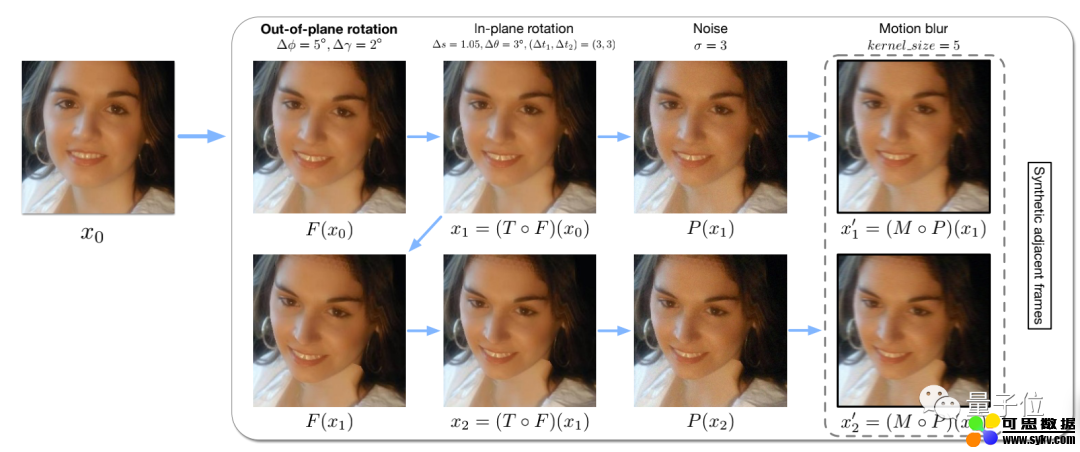 具体来说,以小批量的方式对多张静止图像进行采样,对于每张静止图像x0,对其进行稍微平滑的变换,生成一个有n个相邻帧的合成视频: