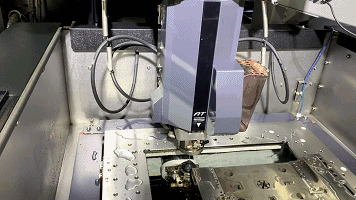 通过使用石墨电极实现高速、低消耗的加工,减小石墨电极消耗最大90%。通过微小脉冲,将放电痕径从之前的25~30μm弱化到8~17μm,完成统一面精度的高质量镜面加工。现在,在硬件上也进一步升级,标配带Z轴光栅尺并加装温度传感器,有效降低因长时间加工温度上升对加工精度的影响。新版本实现了接插件领域加工时间缩短48%,浇口加工时间缩短19%,微细浇口时间缩短28%。