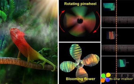 蒸汽触发材料快速变色该研究成果 7 月 31 日在线发表于国际顶级学术期刊《细胞》(Cell)姊妹刊 Matter 上。“传统的软体驱动器难以兼具变形与变色的多功能特性,而我们研发的爬行机器人能够像自然界中的生物一样,自主感知环境变化并及时做出反应。”杜学敏博士接受采访说道。打造更“真实”的柔体机器“人”该研究的另一大突破在于快速变色的同时,结合可控变形与可控运动的材料,实现了仿变色龙的驱动。