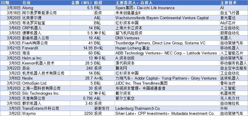 从细分领域来看,2020年第一季度全球机器人行业投融资下,自动驾驶依旧是投资热土,在该领域,2月份丰田对Pony.ai Inc.进行了4.62亿美元的投资,是本季度自动驾驶领域投融资的最值得关注的一笔交易。3月无人驾驶依旧获得大部分资金。