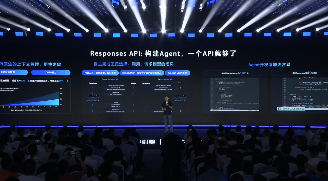 根据火山引擎智能算法负责人吴迪介绍,Responses API具备原生上下文管理能力,支持多轮对话的链式管理,可以无缝衔接文本、图像、混合模态数据,能大幅降低延迟和成本,在典型应用里,整体成本下降幅度可达80%。