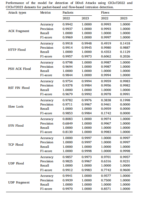 总体而言,流级检测通过整合同一流内多个数据包信息进行综合判断,有效降低了误报率,显著提升了检测性能。并且,基于 CICIoT2023 构建的基线,因涵盖更为丰富的设备信息,相较于 CICIoT2022 基线,在检测性能上更具优势。