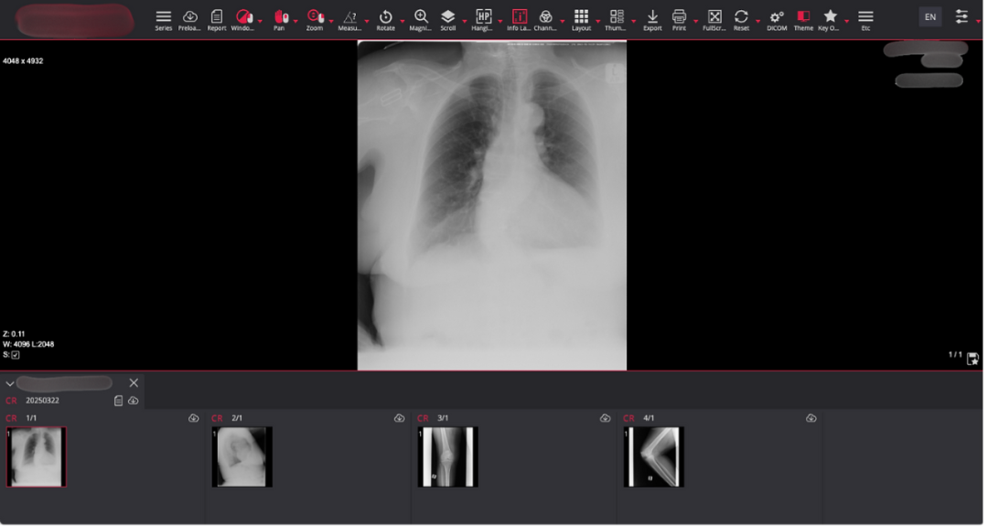 图:包含患者详细信息的胸部、肺部及腿部磁共振扫描图像
