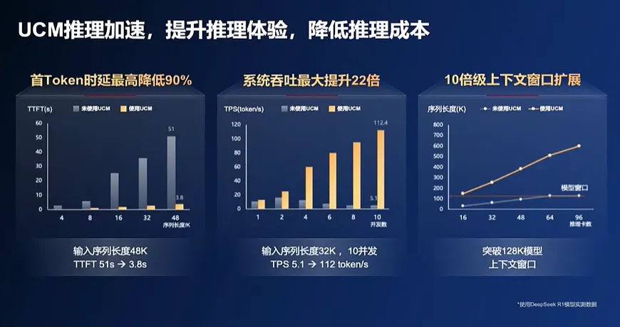 在存算协同能力深度加持下,通过多层介质平衡性能和成本, “推得贵”也不再是难题。华为表示,无需过多投资,UCM就可以让长序列场景下TPS(每秒处理token数)提升2-22倍,相当于降低每Token推理成本,为企业减负增效。