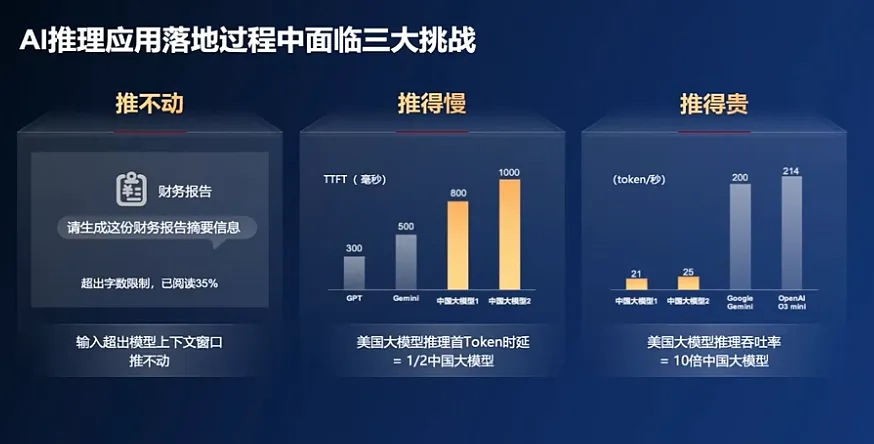 多种难题下,国产大模型陷入了 “推不动”、“推得慢”和“推得贵”的困境。
